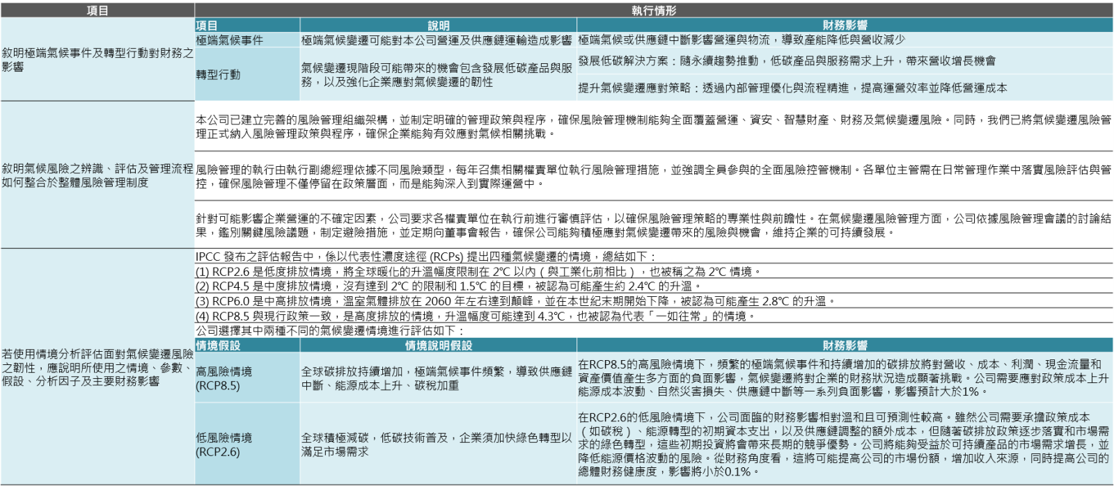 ▉ TCFD 氣候變遷相關風險與機會管理